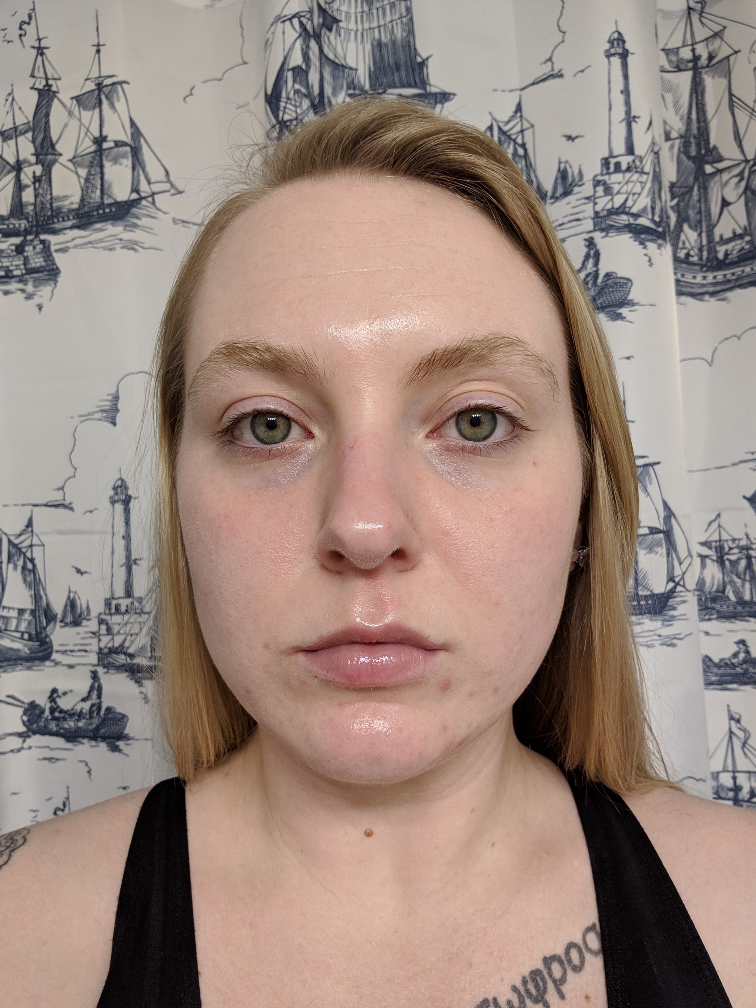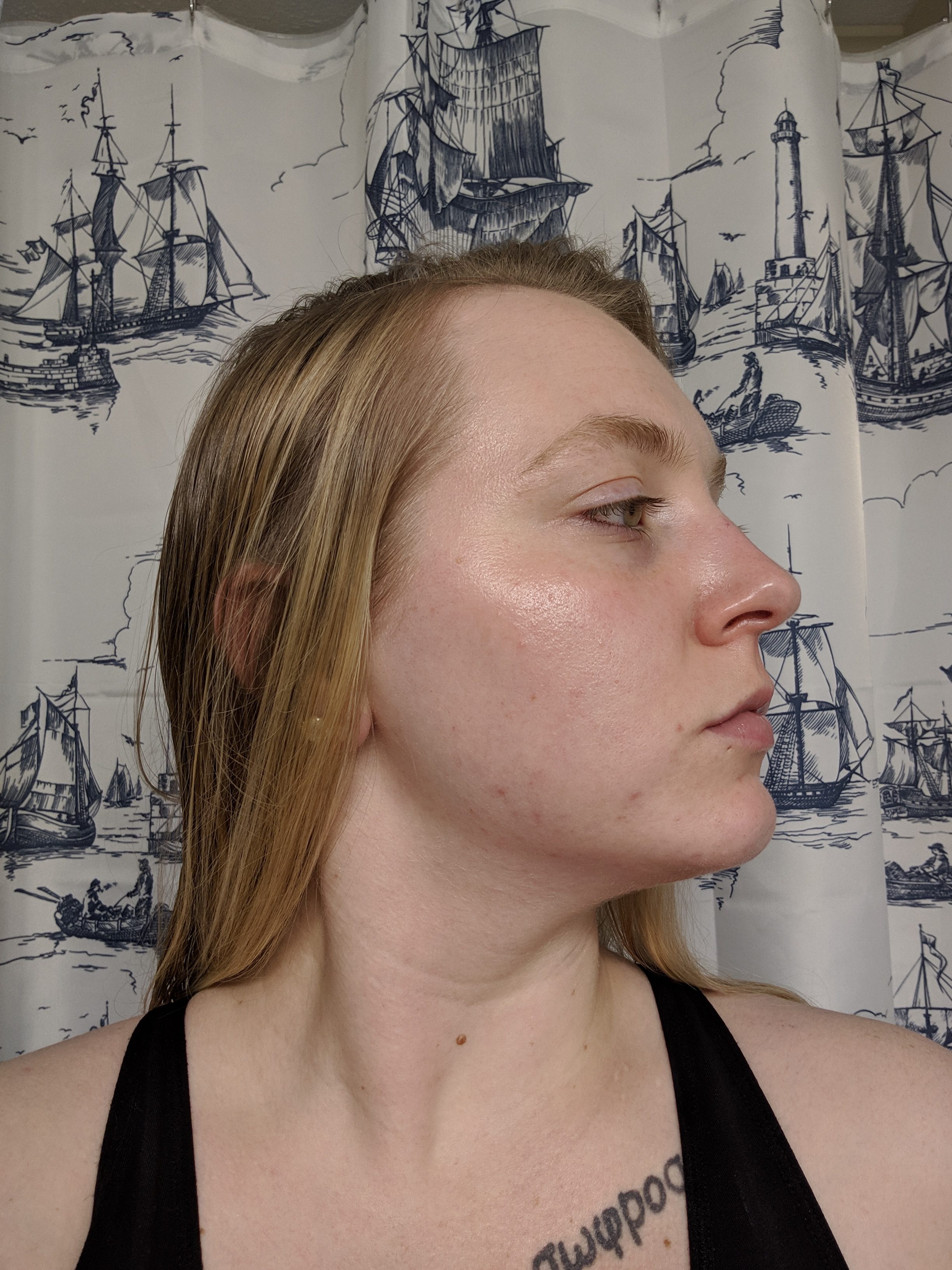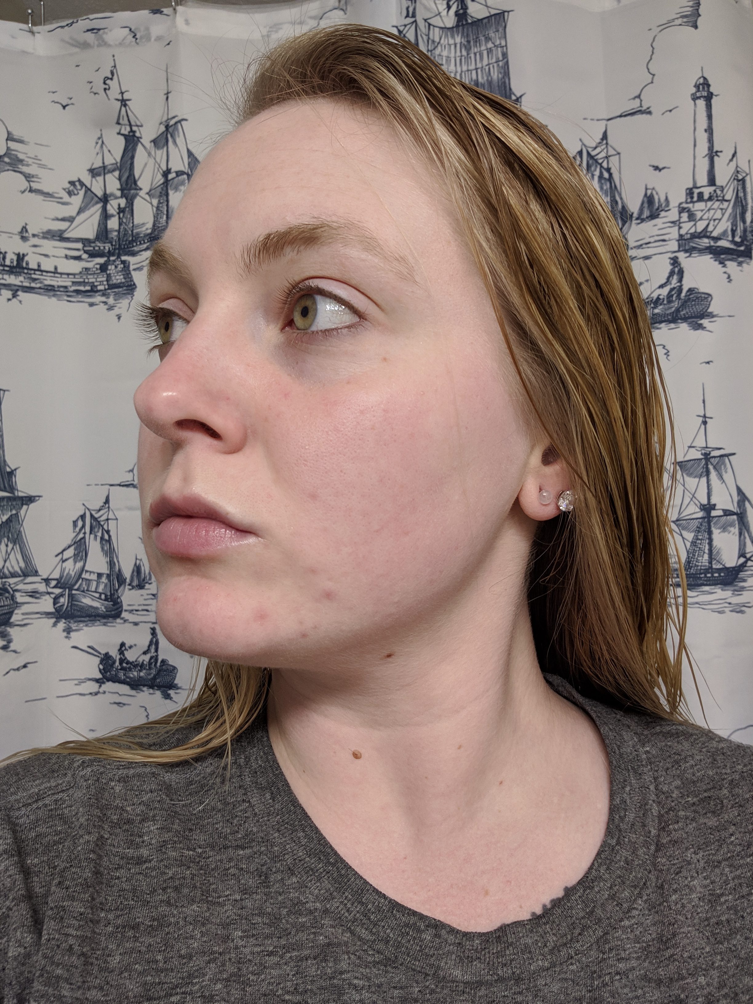 My skin in this photo has been cleansed, but I have not yet done my night time skin routine.