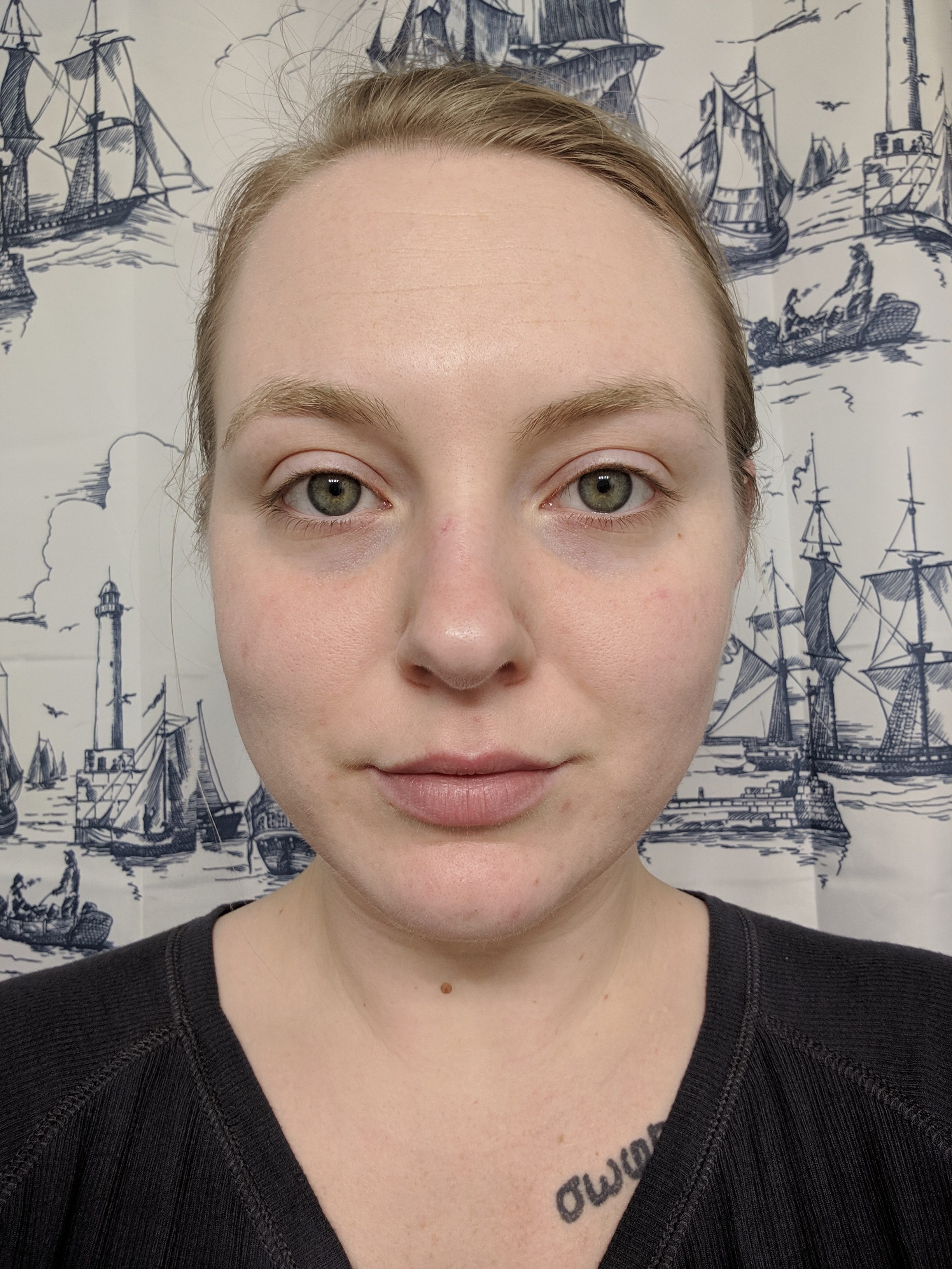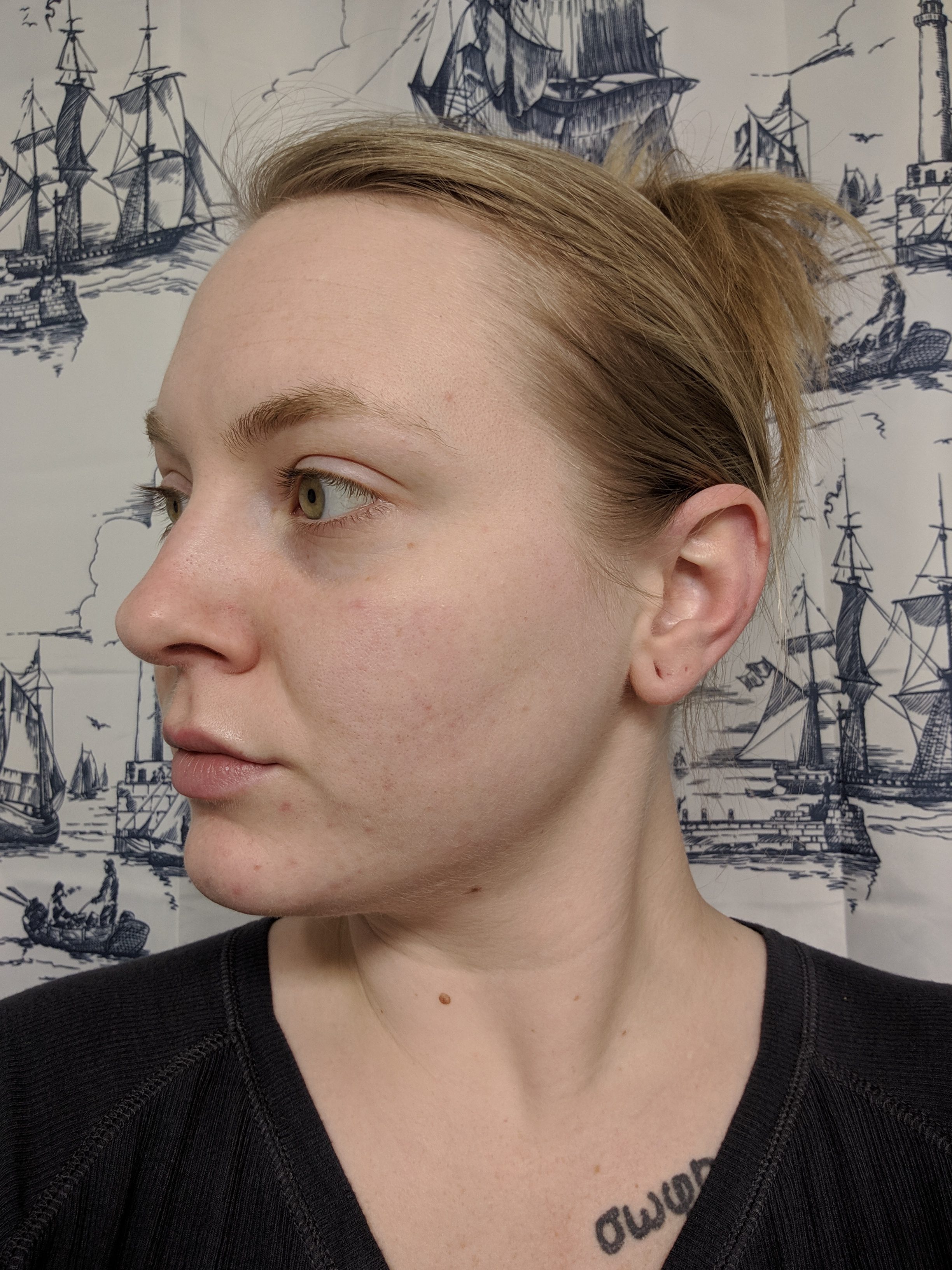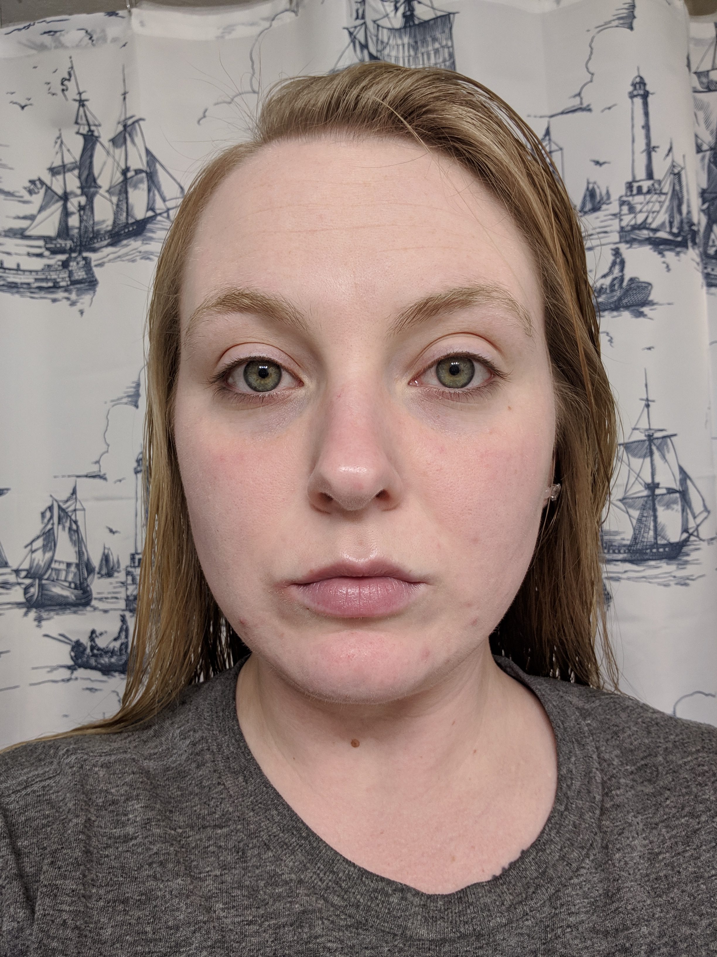 My skin in this photo has been cleansed, but I have not yet done my night time skin routine.